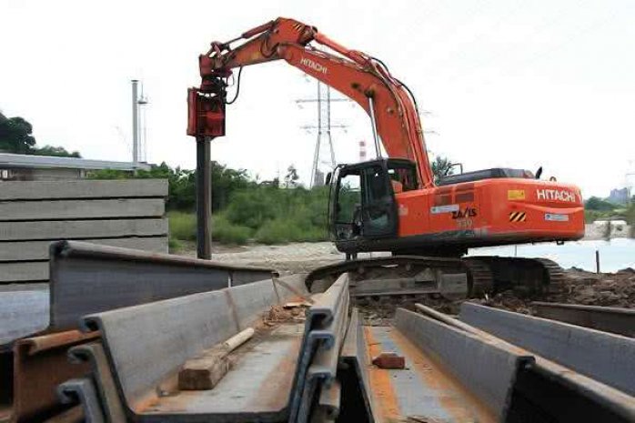 Вибропогружатель представляет собой навесное оборудование для забивки и извлечения свай, шпунтов, железобетонных труб. Аренда вибропогружателей всегда себя оправдывает, поскольку позволяет сократить время проведения работ в десятки раз, если сравнивать с выполнением таких же работ вручную. Более того, если железобетонные или металлические конструкции отличаются большими габаритами и весом, а почва на участке достаточно плотная, то без спецтехники и вовсе не обойтись. При этом вибропогружатель отличается невысоким уровнем шума в отличие от сваезабивной машины, что важно при строительстве в условиях плотной городской застройки.