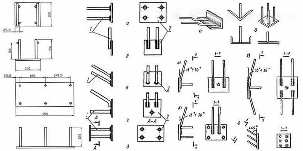 • с приваренными под разными углами (наклонное, параллельное, комбинированное расположение) к пластине анкерами, штырями и пр.;